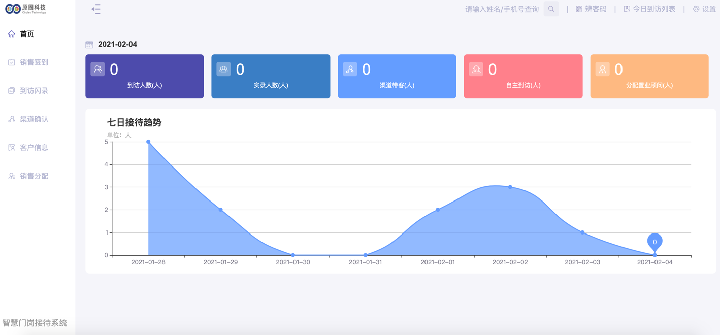 每日来访复访、渠道带客、销售接访数量一目了然